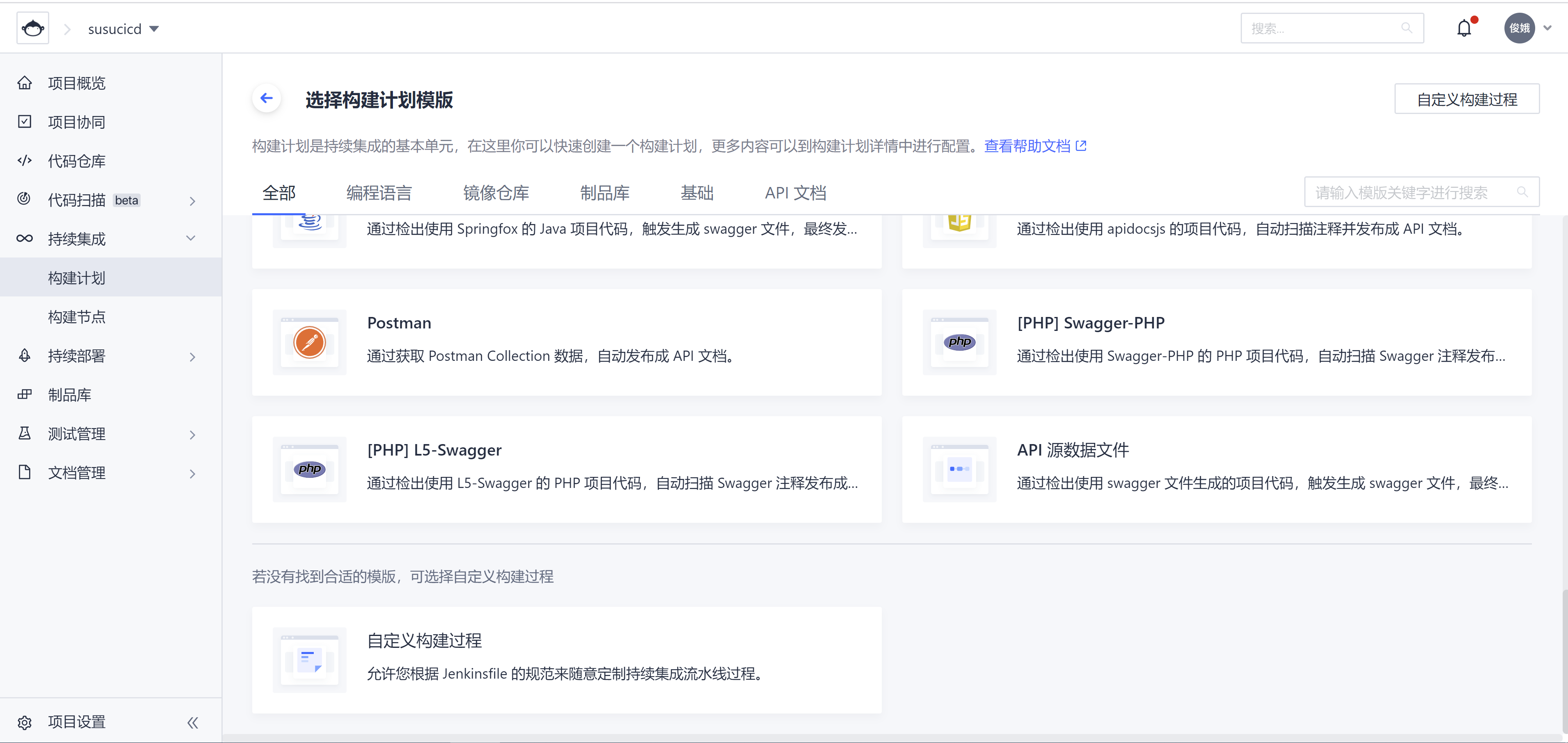 创建一个构建计划,选择自定义构建过程。