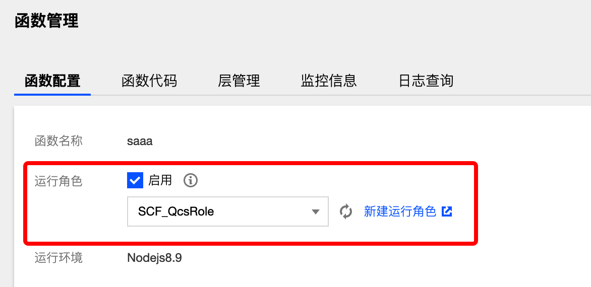 1.到云函数控制台启用运行角色